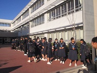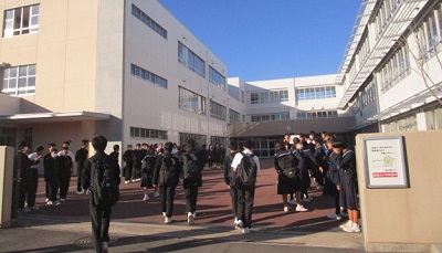 寒さのため背中を丸めた前傾姿勢やポケットに手を突っ込んで登校している子も多く見かけました。