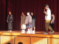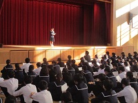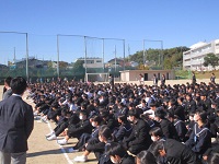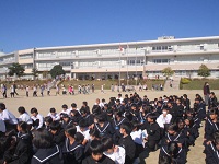 8:30、本日午後に行われる音楽発表会に参加する3年代表クラスを励まし送る会を体育館で行いました。