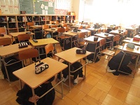 テスト中、南館1年生の廊下は、小学校と隣接していて小学生の声が漏れてくるのを防ぐために扉を閉めています。