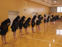 今日の授業では、試合をする前と終りの「礼式」の練習をしてから、約束のない打ち合い(地稽古)を何度も行いました。