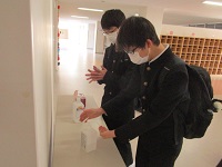 登校時と下校時には必ず両手を消毒するよう指導してまいります。