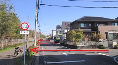 車の交通量は少ないのですが、どの路地から子供が飛び出してくるのか心配な箇所でもあります。