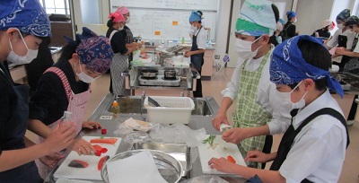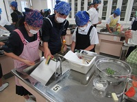 週に1時間しかない授業の貴重な1時間で、調理から試食までを完了するには、グループで協力し合うことと事前の綿密な学習がポイントとなります。