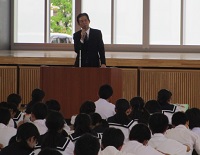 将来どんな職業に就くかわからず不安を持つ子どもたちに、自らの経験を踏まえて終始「夢をもって、目標をもって」楽しく一生懸命に生活することの大切さを語っていただきました。